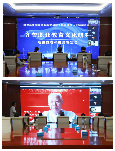 《齊魯職業(yè)教育文化研究》項目是由棗莊職業(yè)學(xué)院牽頭,聯(lián)合天津職業(yè)技術(shù)師范大學(xué)、威海海洋職業(yè)學(xué)院共同完成。此次會議采取線上線下結(jié)合的方式召開,分為成果公開報告會、結(jié)題驗收和成果鑒定會兩個階段進(jìn)行。副院長張藍(lán)兮主持會議。